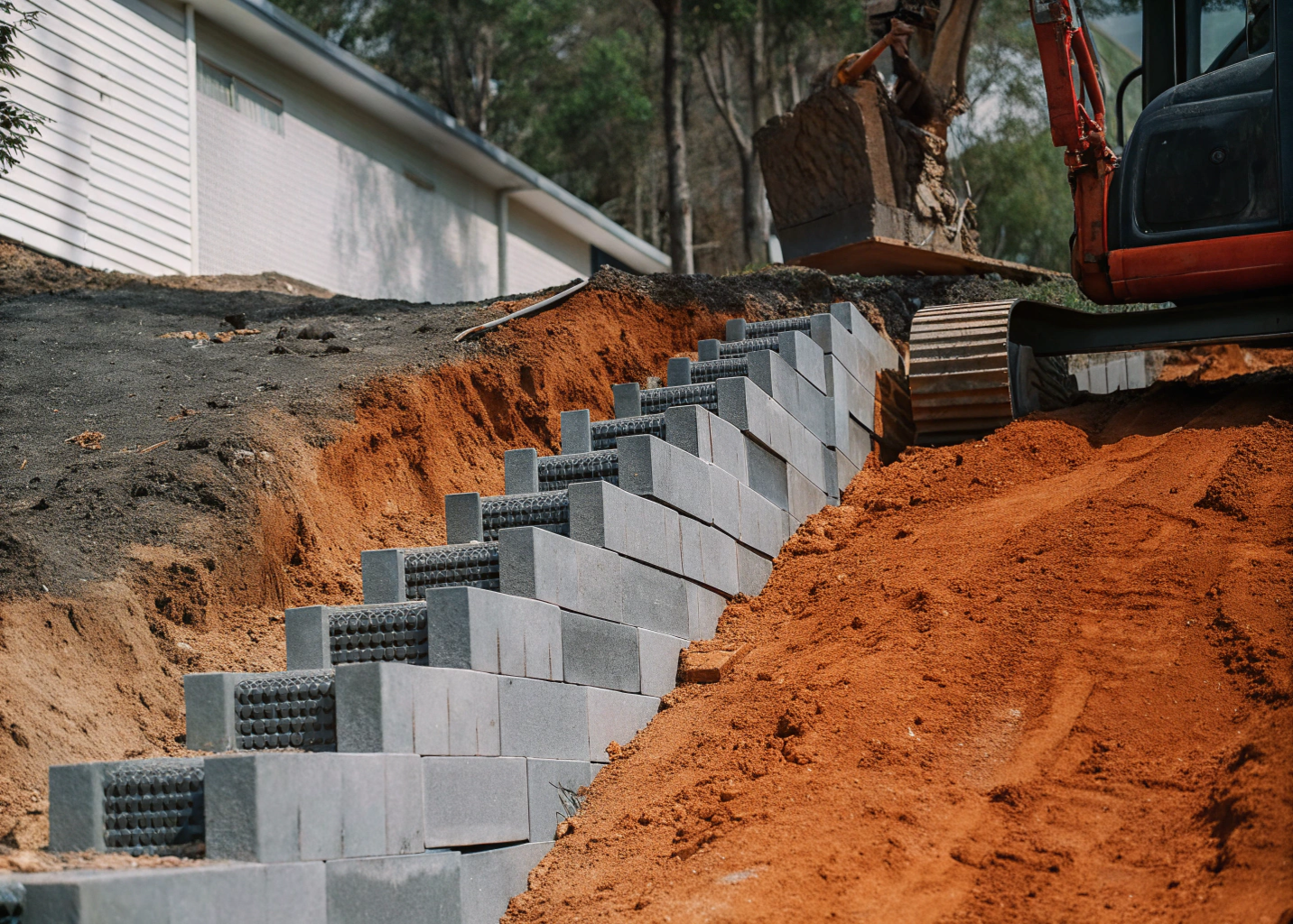 Excavation depth depends on your engineer’s specifications and soil conditions. House slabs typically require 300-600mm of excavation below finished floor level. Driveways might need 150-300mm. Reactive clay areas often require deeper excavation to reach stable ground or remove unsuitable material completely.