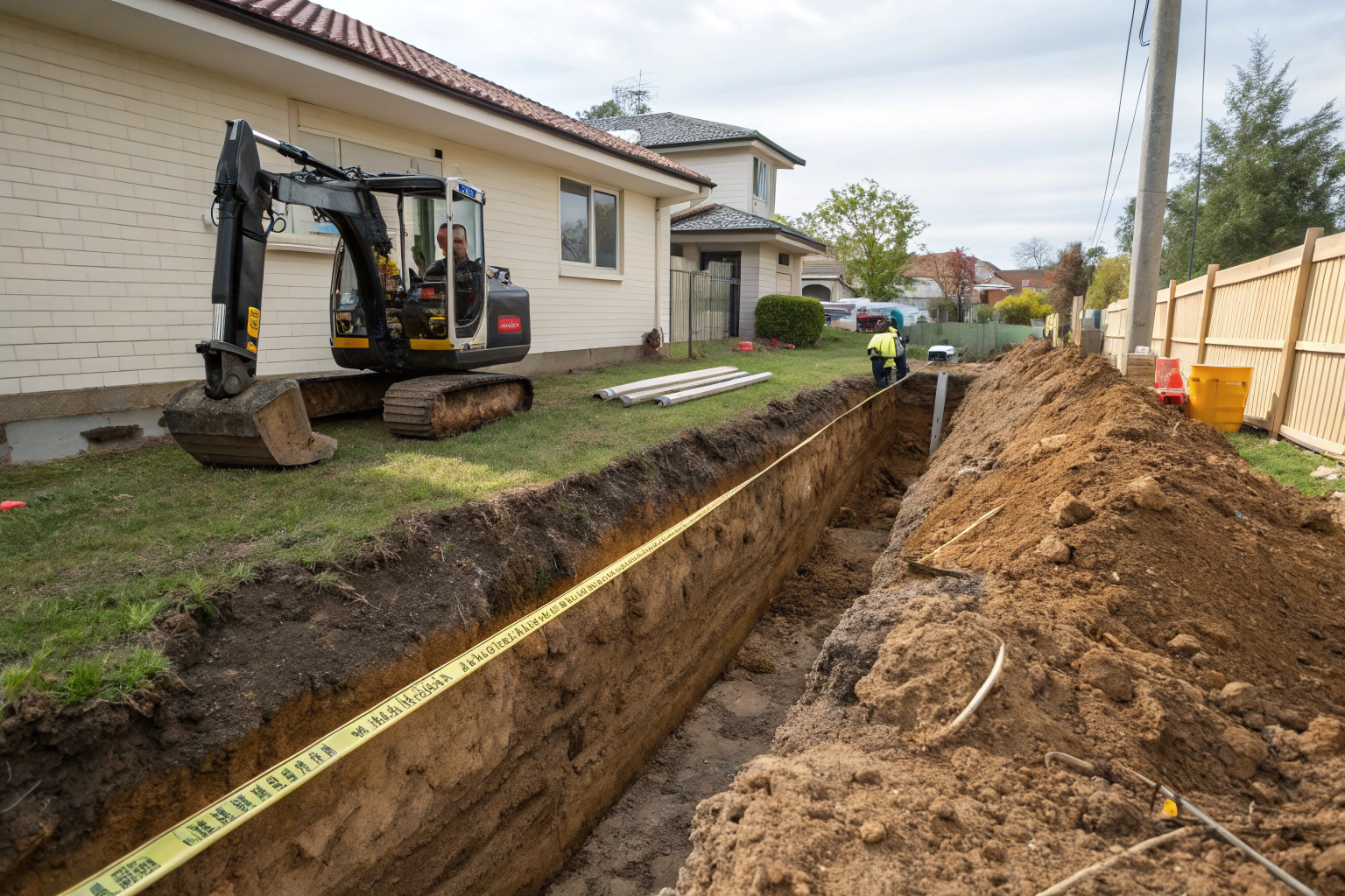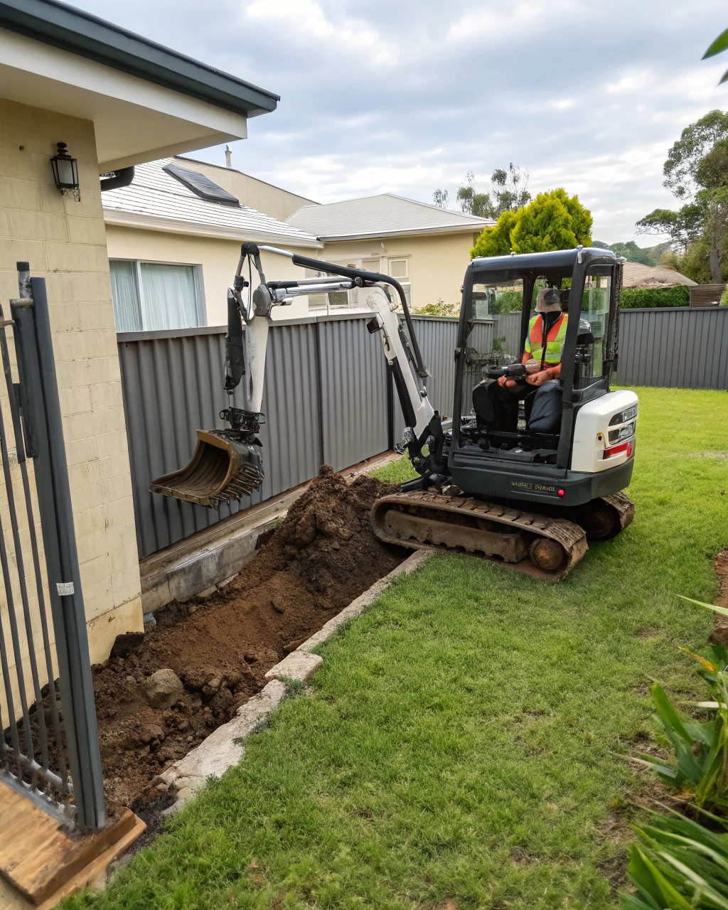 We trench through established gardens and lawn areas while minimizing damage to surrounding plantings. Mini excavators access most residential properties through standard gates, creating narrow trenches that limit disturbance to garden beds. We work around established trees by hand-digging near root zones where mechanical excavation risks damage, maintaining distances that protect root systems. Lawn trenching involves removing turf in strips, stockpiling it separately from subsoil, and replacing it after backfilling completes. Garden bed trenching requires careful plant protection and soil separation so topsoil returns to growing areas. Your garden gets professional trenching that respects existing landscaping while completing necessary excavation work.